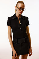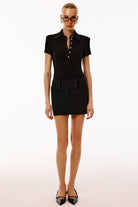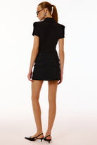 Office Drop | Düşük bel ve kemer köprülü. Arkası kapaklı cep. Astarsız. Önü fermuar ve düğmeli kapama. Mini etek.