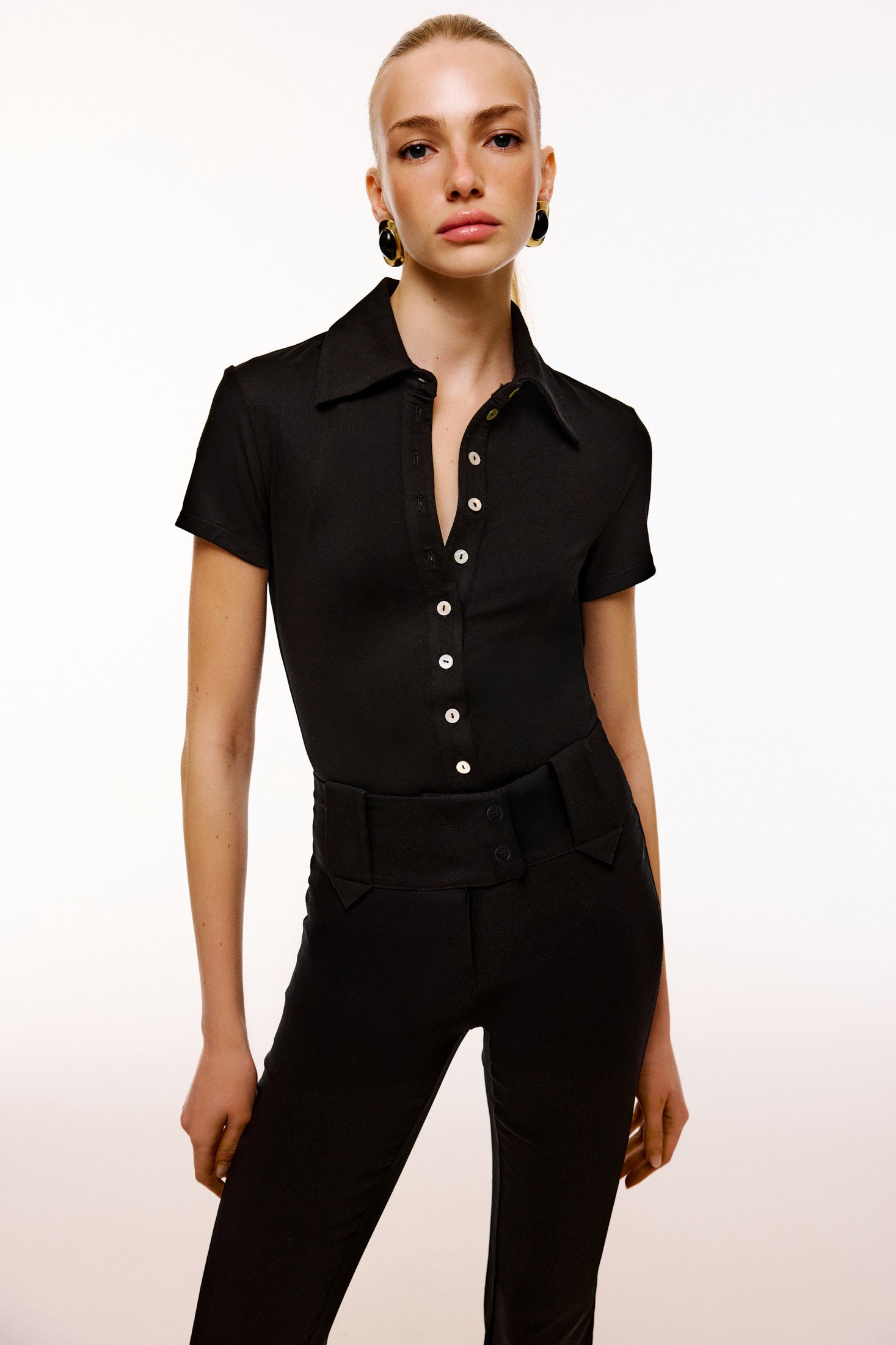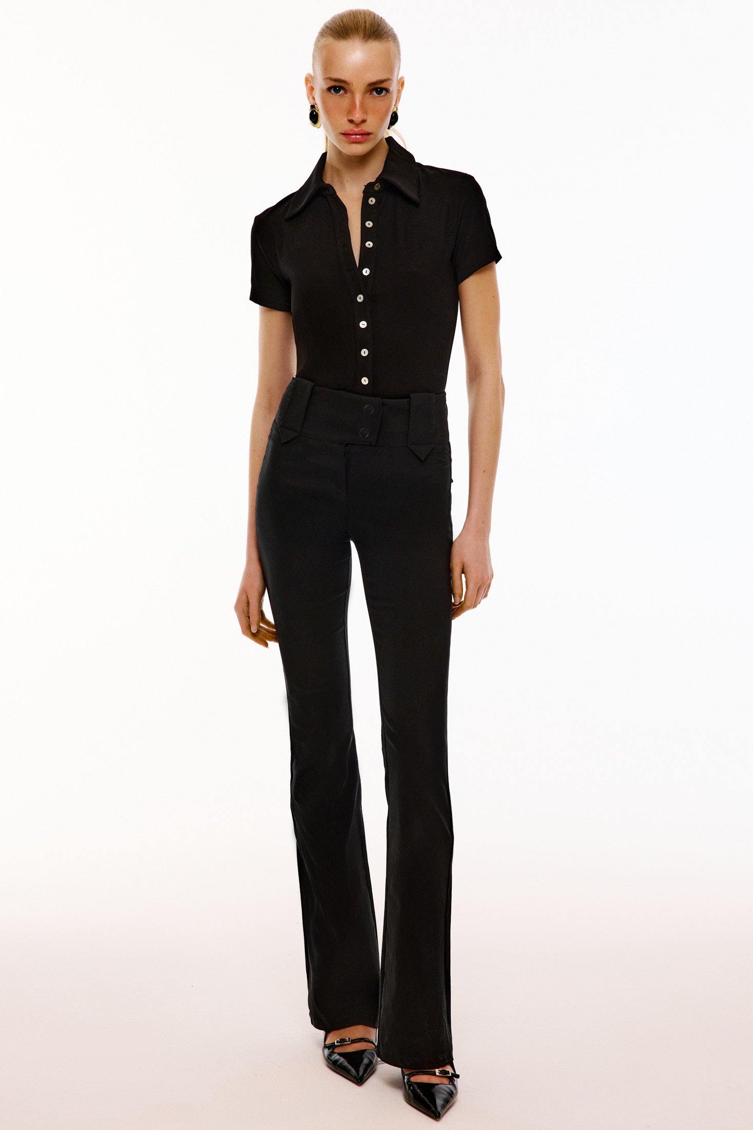 Office Drop | Düşük bel ve kemer köprülü. Arkası kapaklı cep. Astarsız. Önü fermuar ve düğmeli kapamalı pantolon.