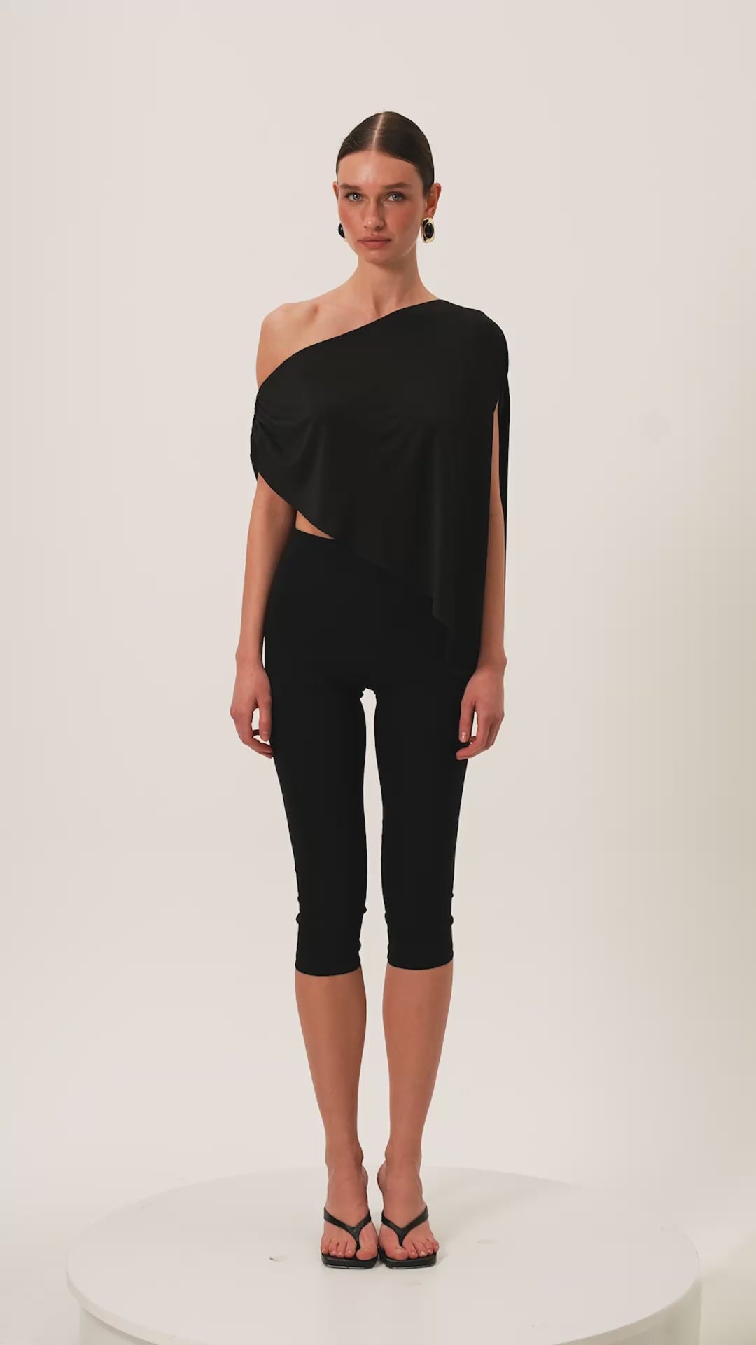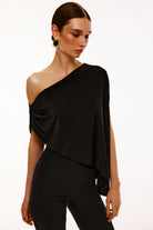 Office Drop | Asimetrik yaka, tek omuz detayı ve drapeli cape.