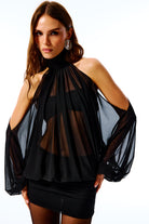 ALTHERIA Collection | Uzun kollu mini elbise. Asimetrik yaka. Yan fermuar kapamalı. Aynı renk sütyen ile gelmektedir.