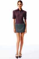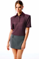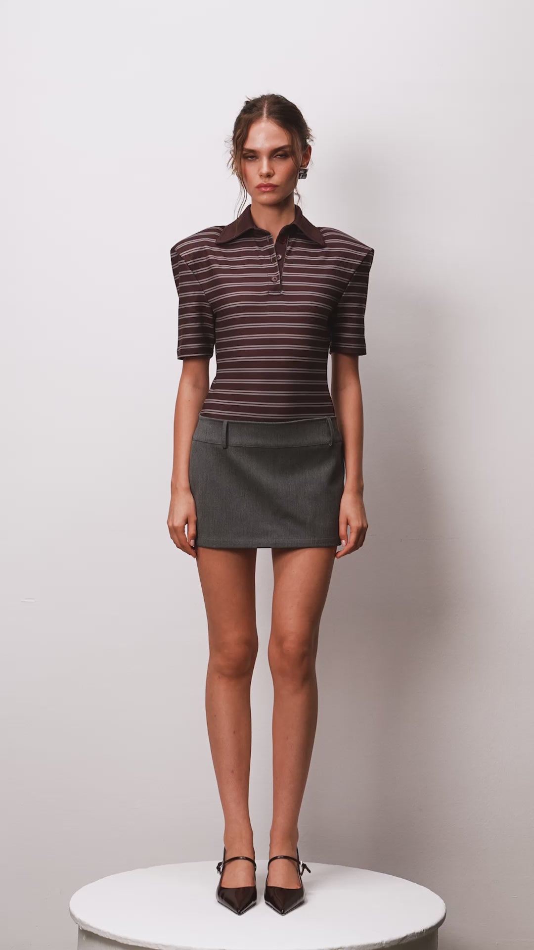The Office Drop | Dik yaka, vatkalı, kısa kollu, ön düğmeli body. Fit kesim.