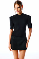 The Office Drop | Vatkalı omuz detaylı, kısa kollu, yuvarlak yaka body. Düz ve fit kesim.