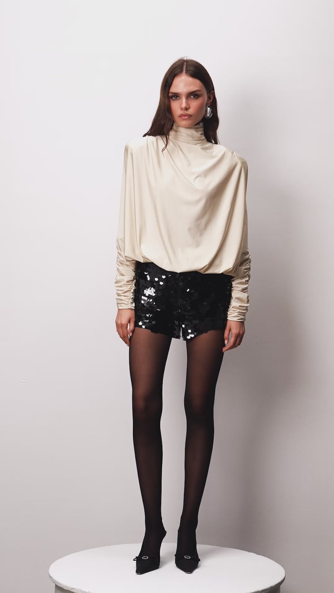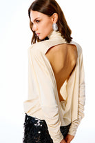 ALTHERIA Collection | Uzun kollu, yüksek yakalı body. Arkası açık tasarımı ve zarif kesimiyle sofistike bir görünüm sunar.