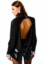 ALTHERIA Collection | Uzun kollu, yüksek yakalı body. Arkası açık tasarımı ve zarif kesimiyle sofistike bir görünüm sunar.