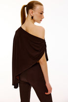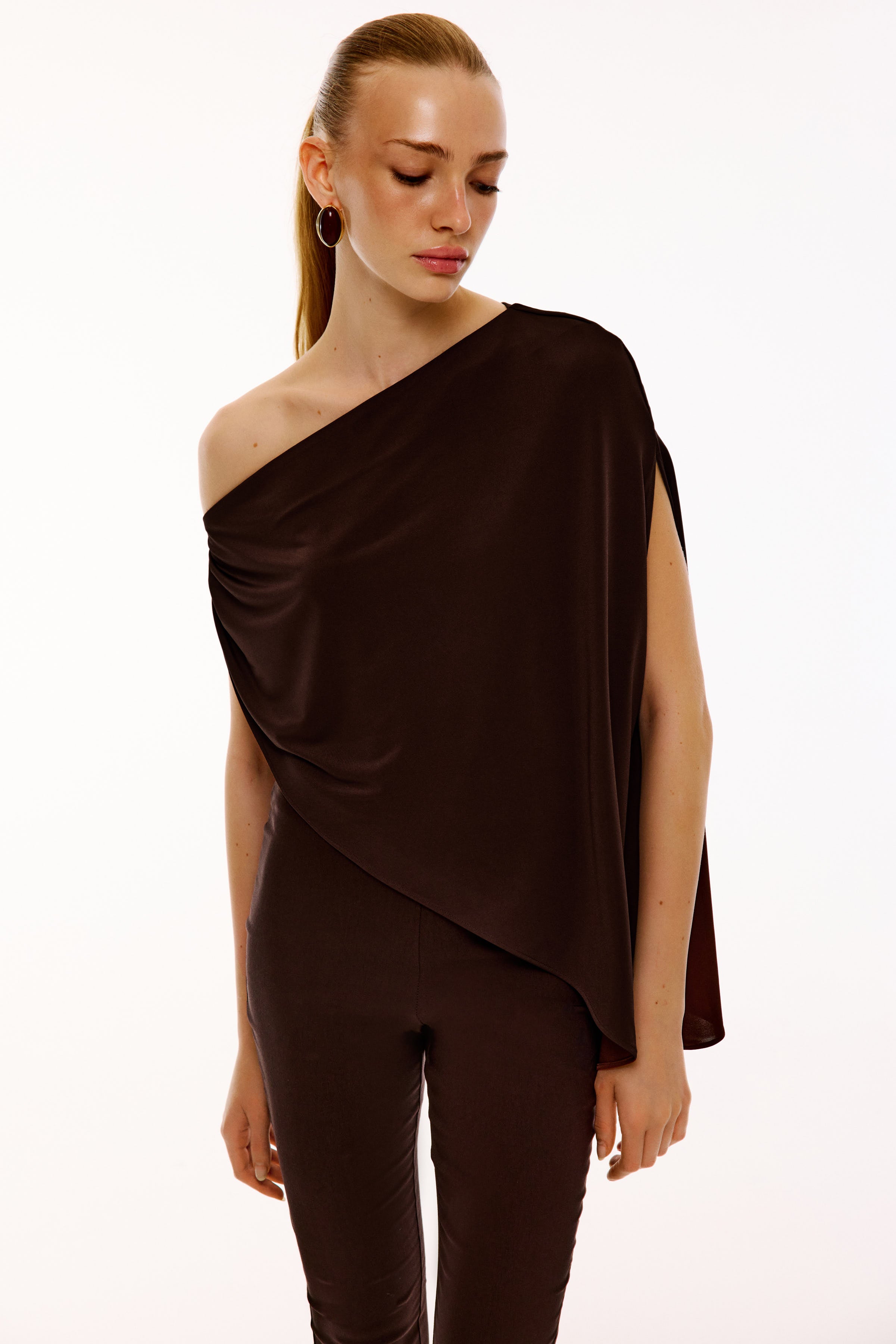 Office Drop | Asimetrik yaka, tek omuz detayı ve drapeli cape.