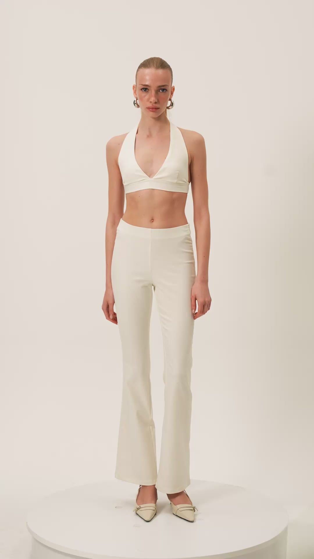 x Melodi Elbirliler | Halter yaka bralet. Esnek kumaş. Ön kısmı V yaka formunda, sırtı açık.