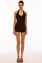 x Melodi Elbirliler | Yüksek bel şort. Esnek ve vücuda oturan kumaş. Gizli fermuar kapamalıdır.