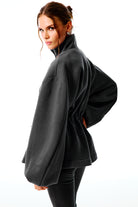 Loungewear Drop | Oversize fit, fermuarlı sweatshirt ceket. Yüksek yaka, geniş balon kollar ve bel kısmında ayarlanabilir büzgü detay.