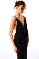 Thalita Collection | Derin dekolteli degaje yaka. Sırtı açık dekolteli uzun elbise.