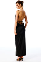 AURA Degaje Yaka Sırt Açık Dekolteli Uzun Abiye Elbise