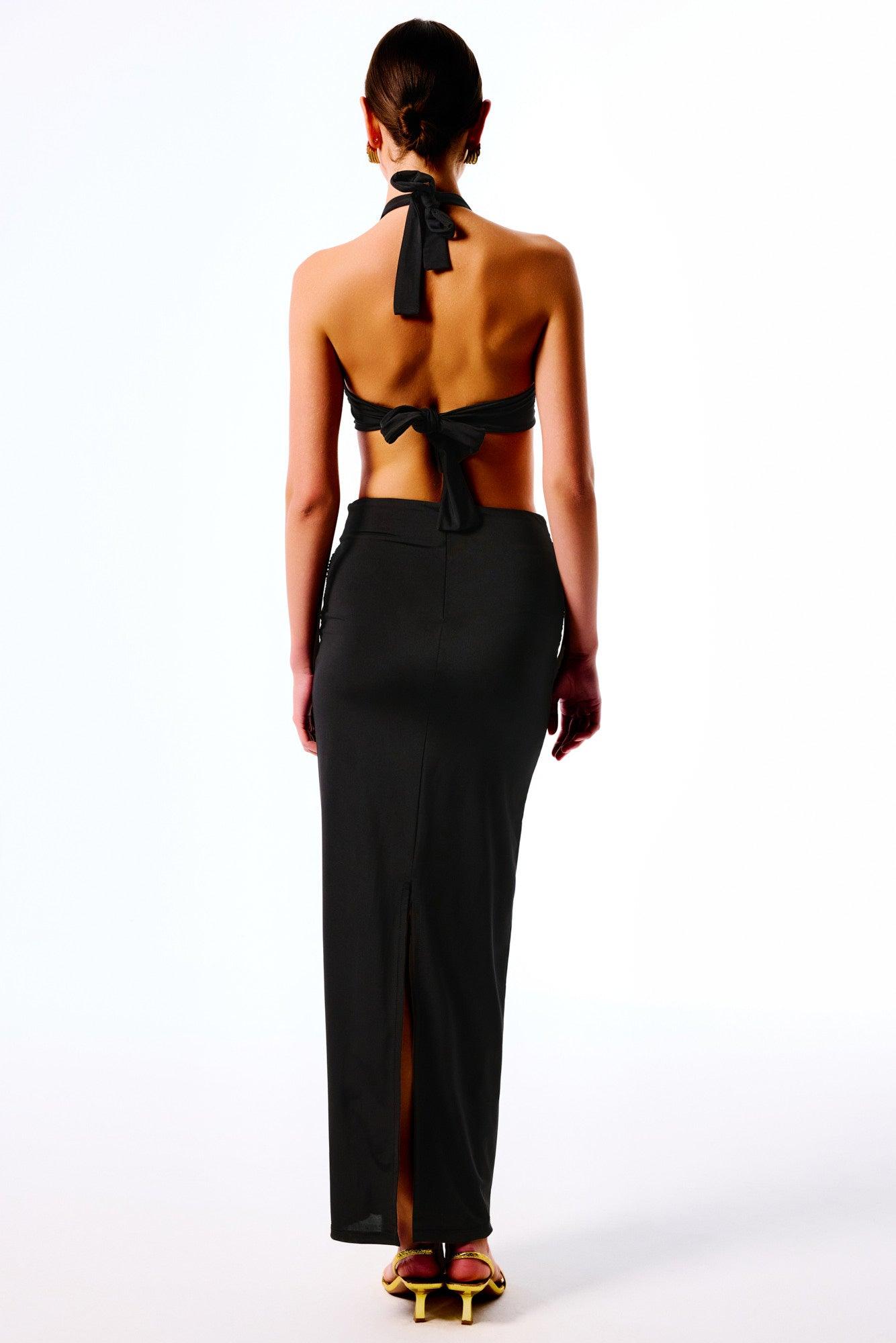 Thalita Collection | Halter yaka formu ve boyundan bağlamalı tasarımıyla öne çıkan, sırt dekolteli ve aksesuar detayıyla tamamlanan kısa üst.