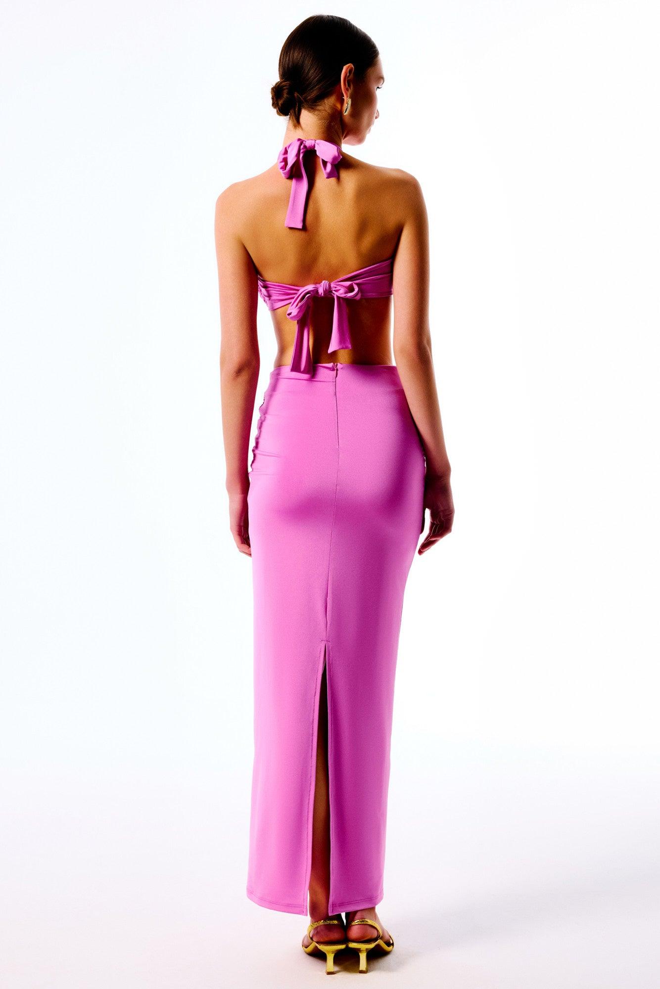 Thalita Collection | Halter yaka formu ve boyundan bağlamalı tasarımıyla öne çıkan, sırt dekolteli ve aksesuar detayıyla tamamlanan kısa üst.