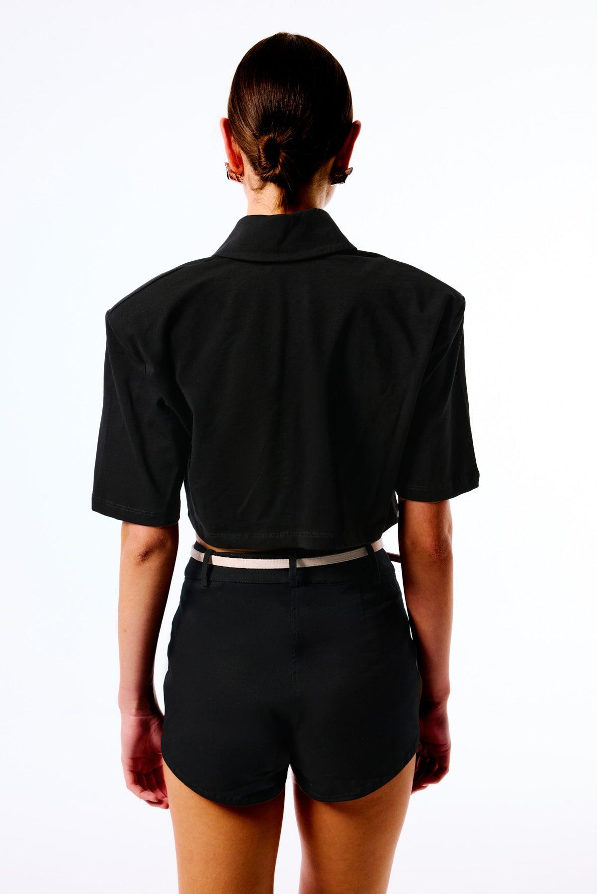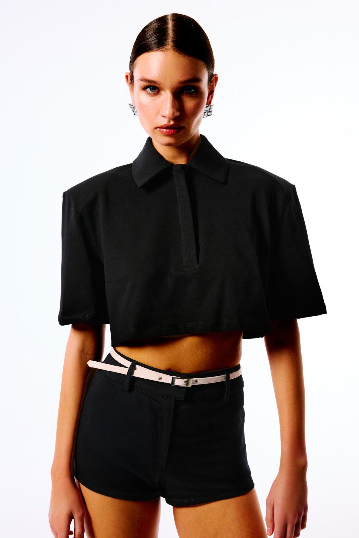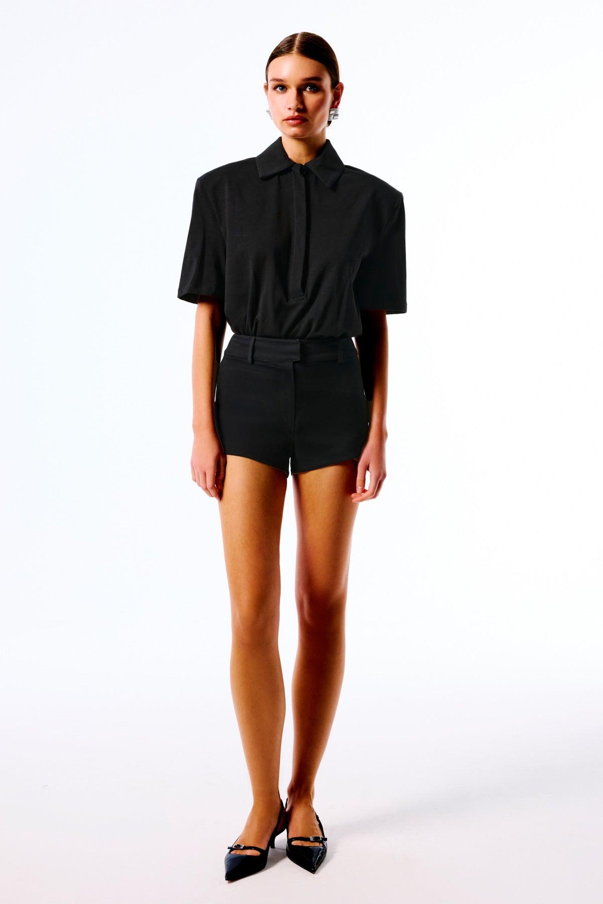 The Office Drop | Yüksek bel, düz kesim şort. Önde gizli fermuar ve kanca kapama detayı bulunur.