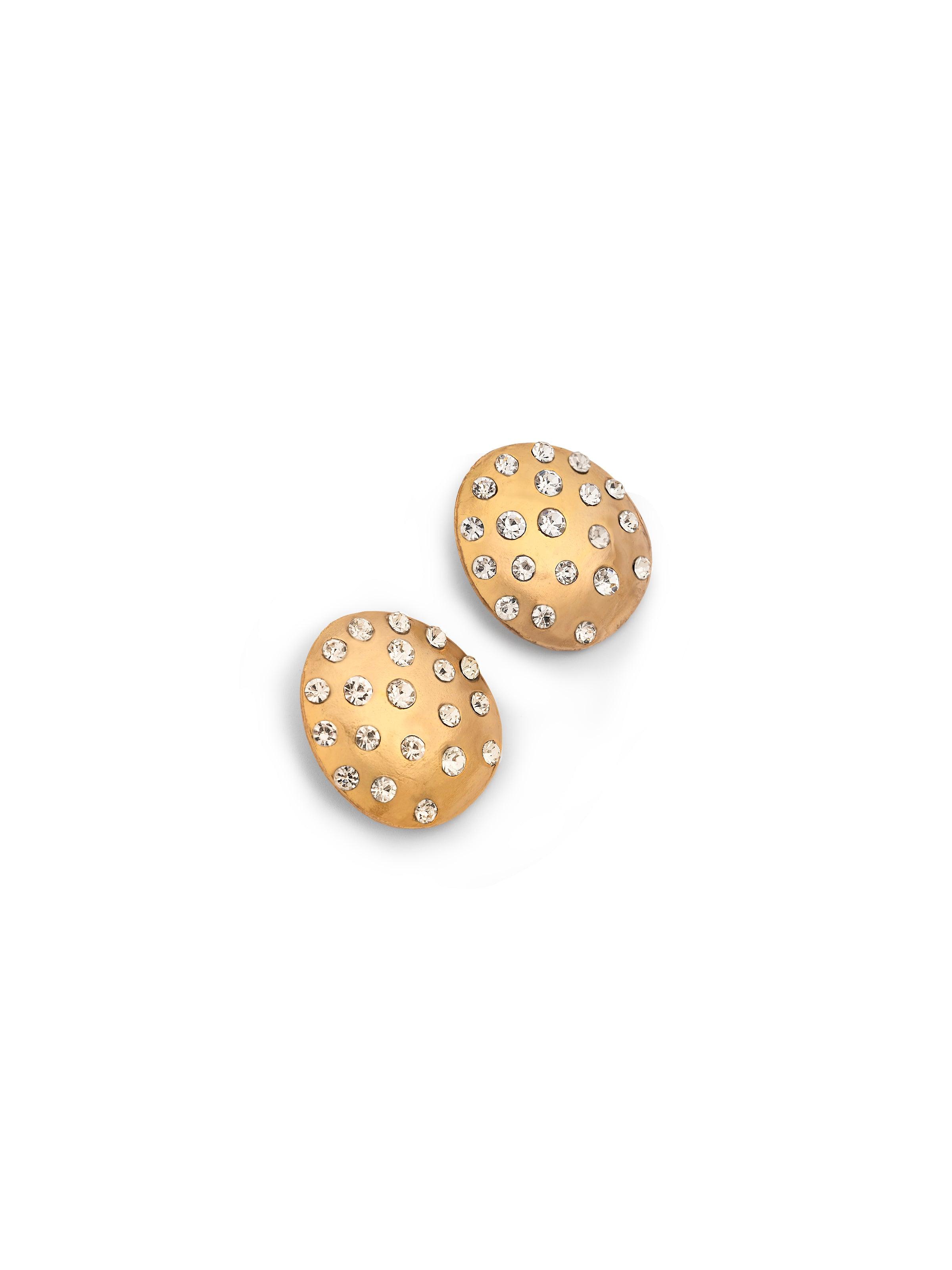 Thalita Collection | Taş aplikeli, dairesel metal küpe. Arkası iğneli. Model bedeni: Tek Beden